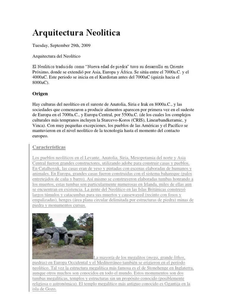 Durante el período neolítico o la "nueva edad de piedra" es donde el hombre comienza a mostrar los primeros avances tecnológicos.. 12.10.2019 · la arquitectura neolítica se refiere a estructuras que abarcan viviendas y refugios desde aproximadamente 10,000 hasta 2,000 ac, el período neolítico. Fatores que contribuíram para a formação da arquitetura megalítica:.. Fatores que contribuíram para a formação da arquitetura megalítica: