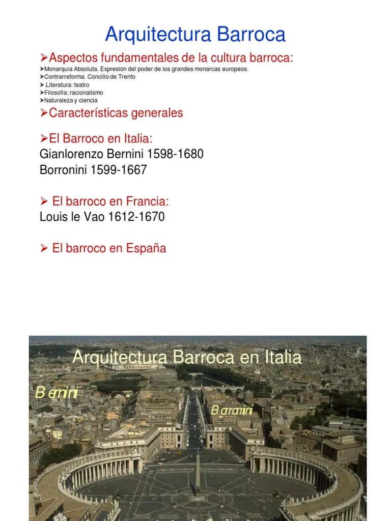 Bernini y borromini.arquitectura barroca en españa el barroco es el estilo dominante en el arte y la arquitectura occidentales aproximadamente desde el año 1600 hasta el 1750... Cubre las fachadas y los interiores dinamismo:. Las raíces del barroco se localizan en el arte italiano, especialmente en la roma de finales del siglo xvi y principios del …